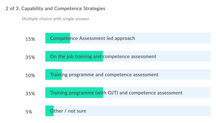 Secondly, there has been a change in competency management strategy in recent years, moving away from focusing only on assessment but now also integrating a training programme, usually including on the job training, alongside assessment as part of the competency management strategy. This is reflected in the poll answers below: